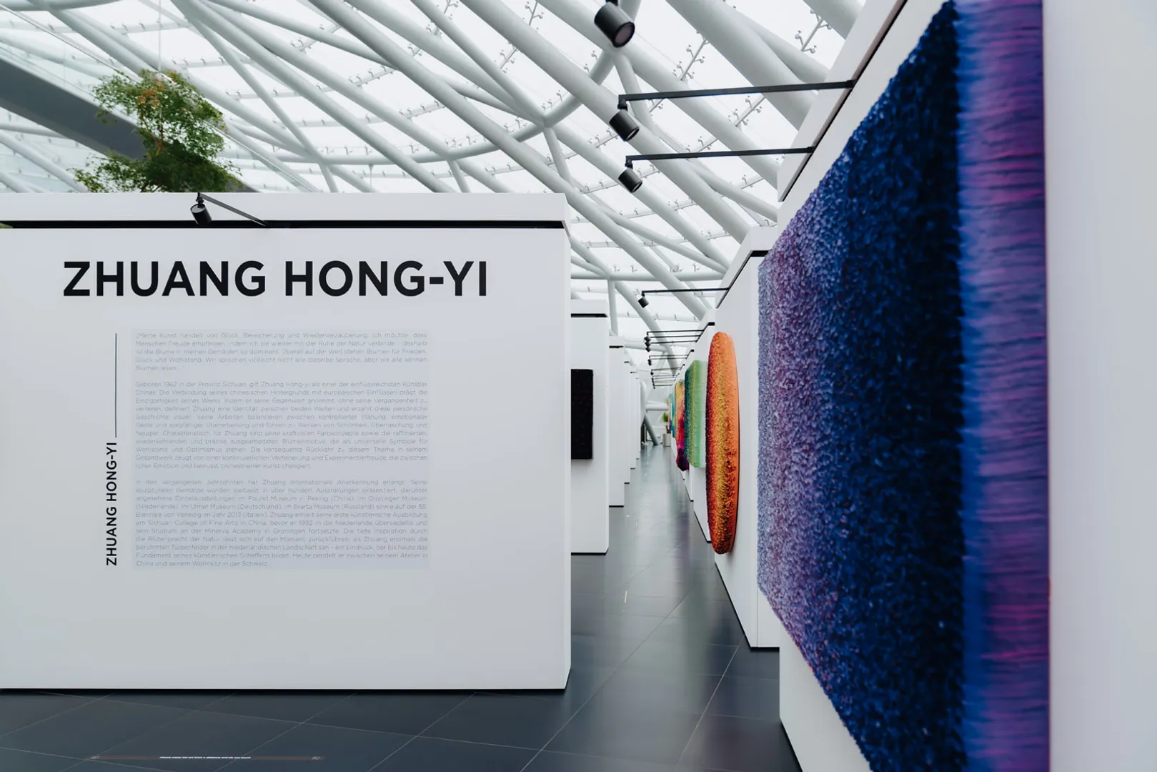 Over the past decades, Zhuang has gained international recognition. His sculptural paintings have been showcased in over 100 exhibitions worldwide, including prestigious solo exhibitions at the Found Museum in Beijing (China), the Groninger Museum (Netherlands), the Ulm Museum (Germany), the Erarta Museum (Russia), and the 55th Venice Biennale in 2013 (Italy). Zhuang began his artistic training at the Sichuan College of Fine Arts in China before relocating to the Netherlands in 1992, where he continued his studies at the Minerva Academy in Groningen. His profound inspiration from the blossoms of nature can be traced back to the moment he first encountered the famous tulip fields in the Dutch landscape – an impression that continues to form the foundation of his artistic practice today. Currently, he divides his time between his studio in China and his residence in Switzerland.
