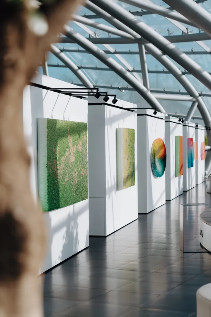 • Art exhibition at Red Bull Hangar-7, architecture, painting